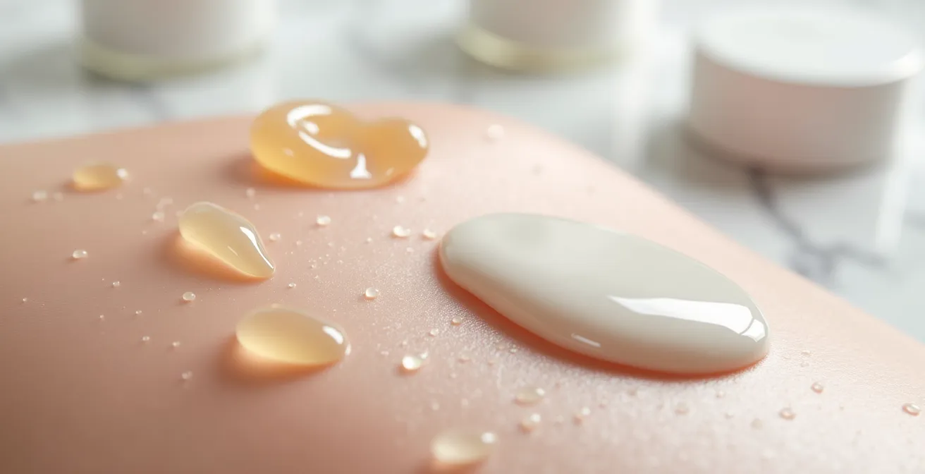 Pour les produits à base d’eau, comme les toniques, les essences et les sérums à l’acide hyaluronique, une peau légèrement humide est votre meilleure alliée. L’humidité agit comme un vecteur, aidant les ingrédients hydrosolubles à pénétrer plus rapidement et plus profondément dans l’épiderme. Appliquer un sérum hydratant sur une peau encore fraîchement brumisée d’eau thermale ou de tonique en décuple l’efficacité. On ne parle pas d’une peau ruisselante, mais d’une peau fraîche et réceptive. La technique d’application par pressions douces est alors idéale pour faire « boire » le produit à la peau sans la frotter.